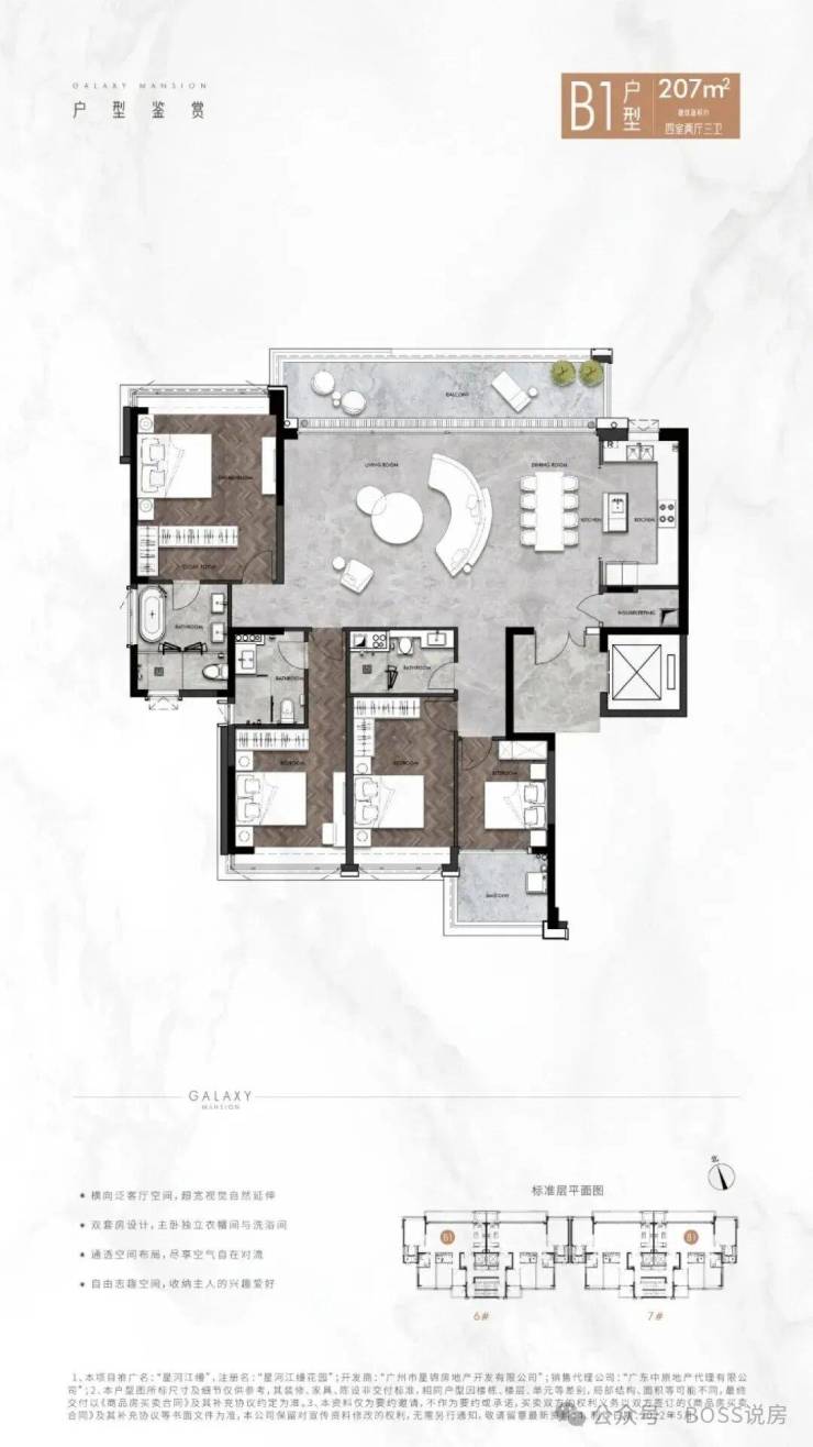 207平 四房三卫双主套 ✨星河江缦开发商咨询电话:400-856-3771