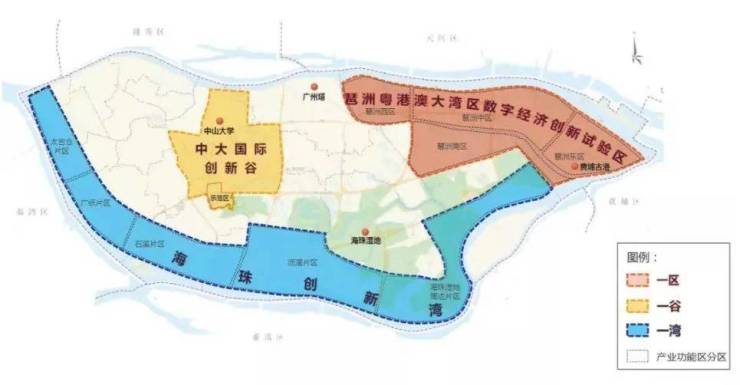 越秀·江湾潮起位于广州海珠创新湾核心区大干围板块,地处粤港澳大湾区中轴,正构建“一区一谷一湾”创新发展新格局,东部以琶洲试验区为龙头,南部以创新湾产业集聚区延伸发展,实现世界数字创新岛的区域想象。