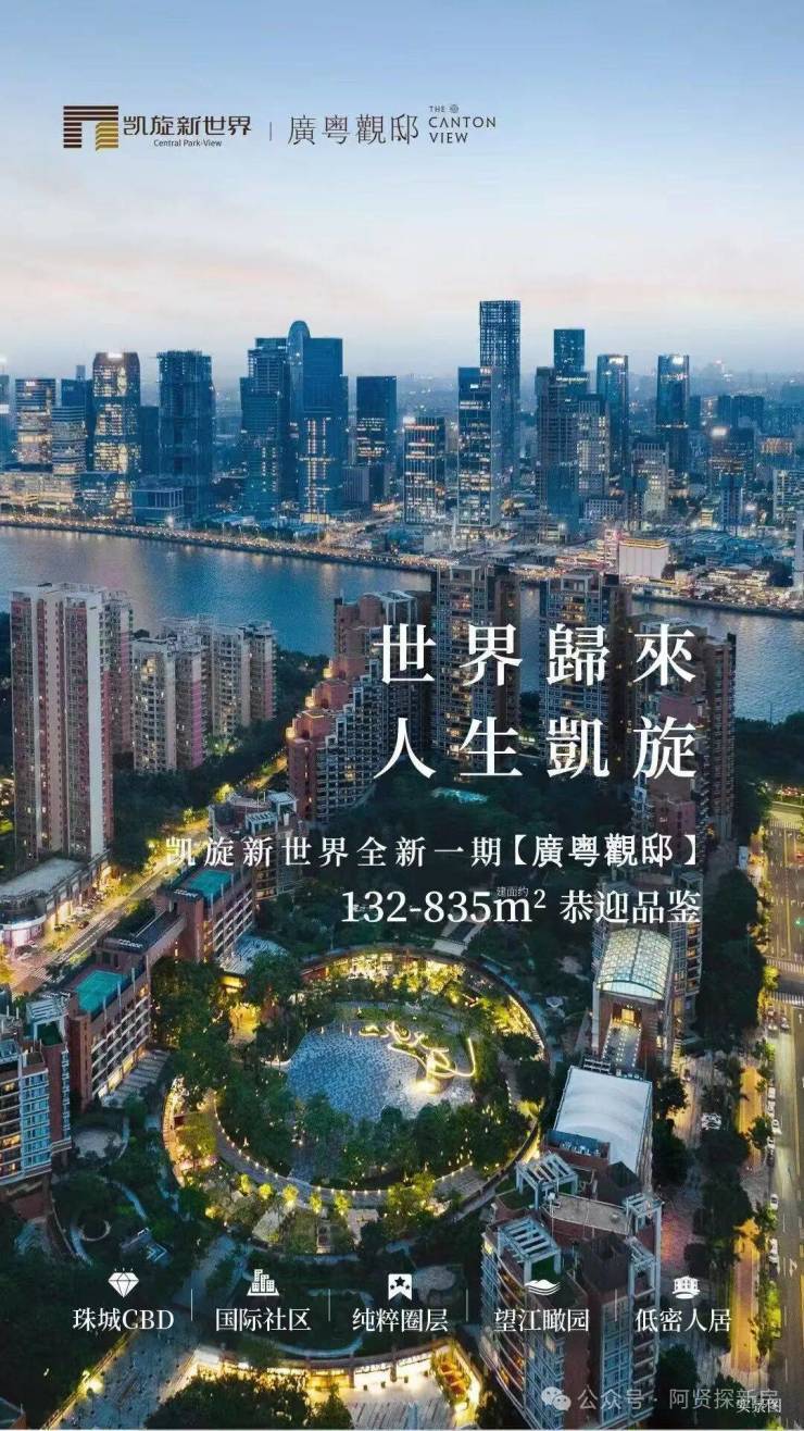 凯旋新世界【广粤观邸】作为新世界中国在珠江新城核心打造的顶级豪宅,以“港资房企卓越引领者”的背景与长期主义理念,铸就CBD难以复制的稀缺资产。项目坐拥450米超宽楼间距、约4.8万㎡私家园林,容积率仅2.9,是珠江新城罕见低密人居标杆;南望一线珠江景观,北揽中央园林,兼具城市繁盛与自然生态,非再生资源属性赋予其“藏品级恒定价值”。同时,项目依托广粤国际生活圈,汇聚多国领事、外企高管及精英圈层,配套顶级私人俱乐部【广粤会】,定义广州高端圈层生活范式。