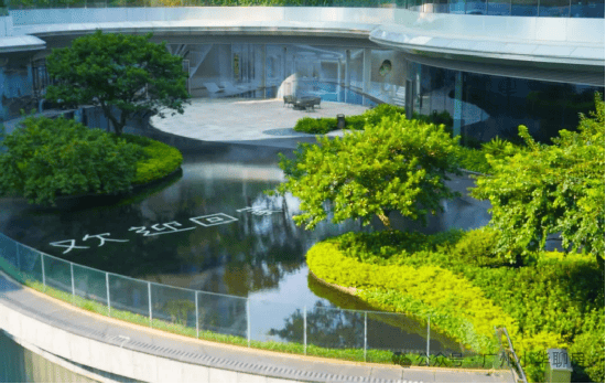 流水、瀑布等景观的营造,消弭了珠江与建筑的边界。让人步入小区中,也仿佛能听到珠江水的流动,瞬间忘却外部的喧嚣,投入自然的怀抱。