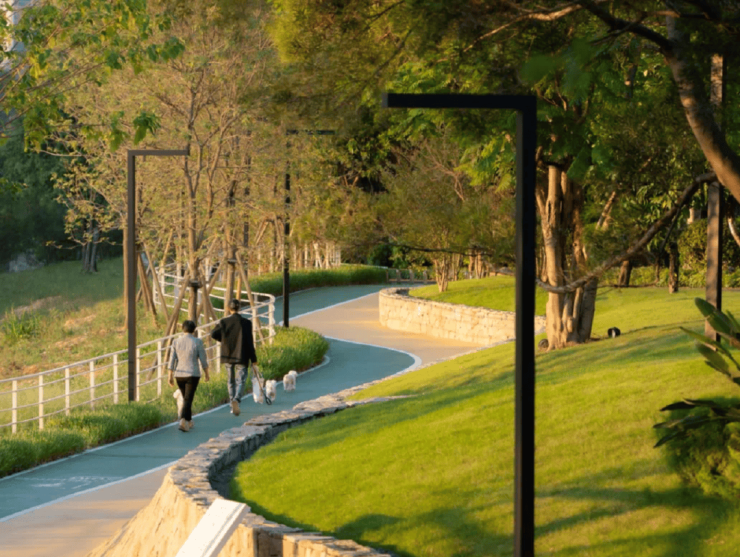 项目占有城市自然资源,背靠浔峰山,南望凤凰湖,保持对城市稀缺自然资源的价值占有,打造山的活力回环水的形态系统,可参与、可体验、可互动的山水。