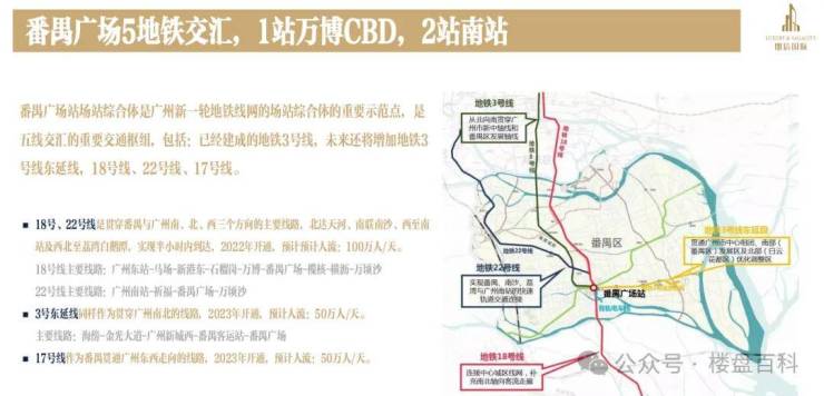 地铁——广州地铁3号线、17号线、18号线、22号线的番禺广场站附近,其中17/18/22线时速达160公里,为目前国内在建地铁时速最快,可实现1站万博,2站南站,5站天河,快速抵达珠江新城、广州东站、琶洲、万博、白鹅潭等中心商务区;