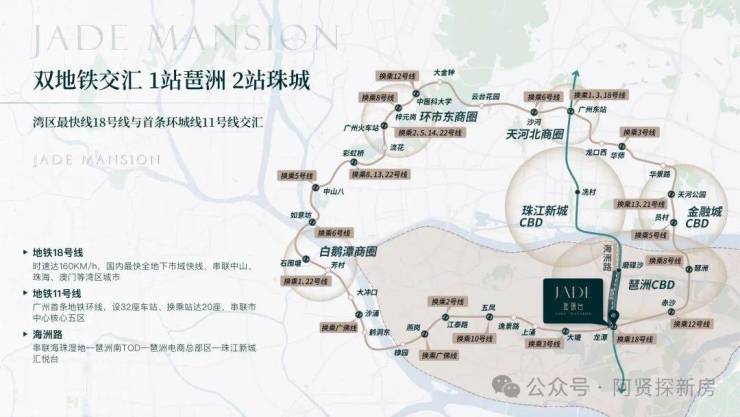 ◆ 地铁18号线:国内最快全地下市域快线,串联中山、珠海、澳门等湾区城市;◆ 地铁11号线:广州首条地铁环线,设32座车站、换乘站达20座。