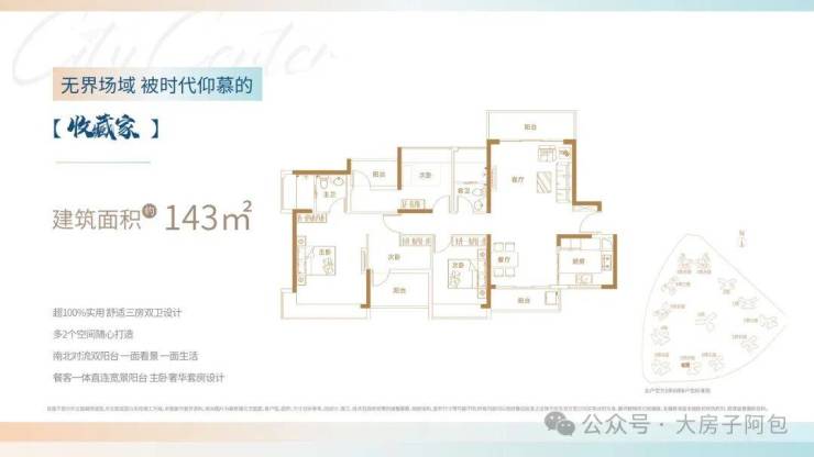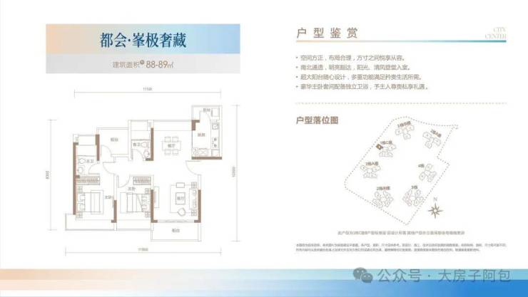 2梯3户奢居梯户比,奢阔楼距,朝向、景观、面积层数等追求极致平衡,户型空间厅房方正实用、明厨明卫、动静洁污分区明确,配置储存空间,多数户型配置入户花园。