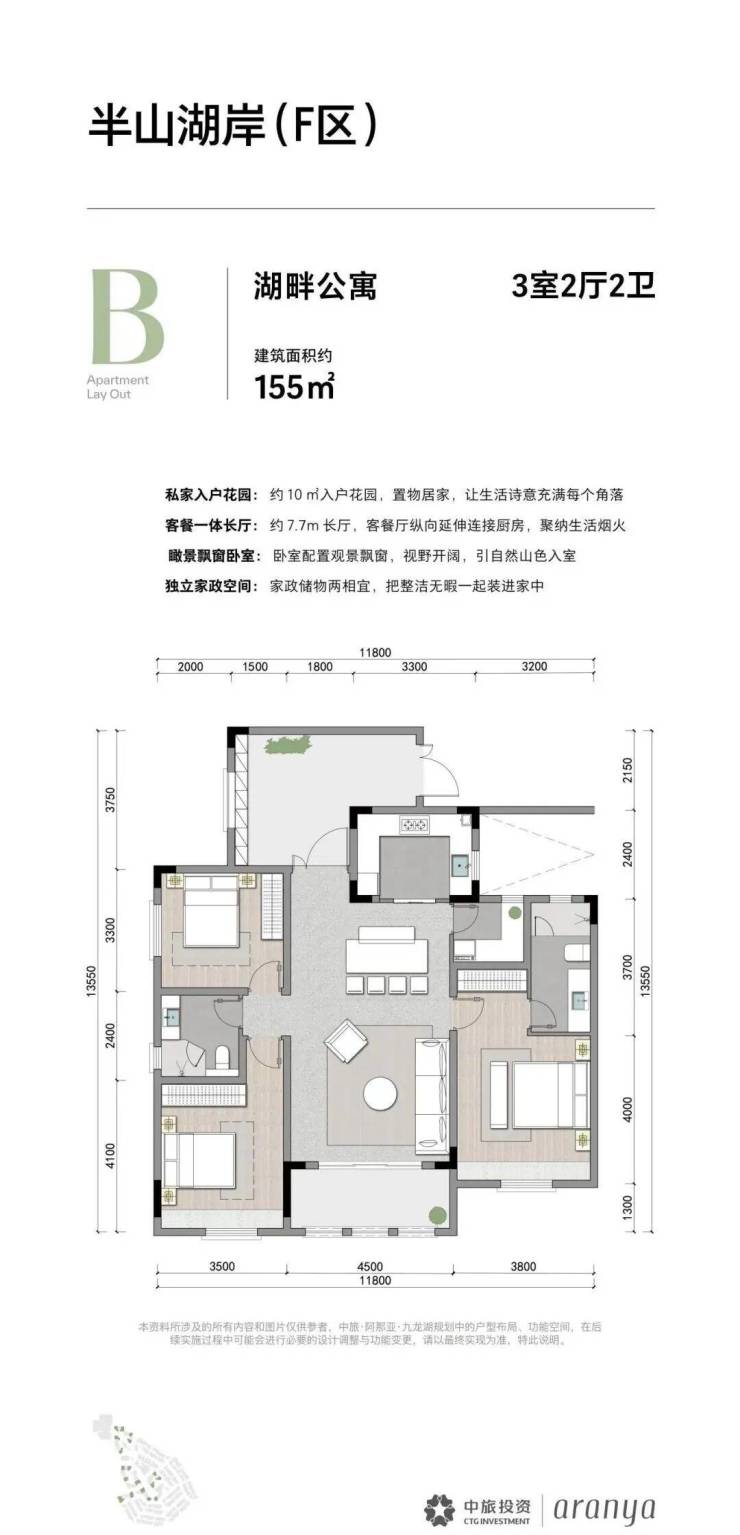 ✮产品面积:118方(2+1房2厅2卫)155方(3房2厅2卫)