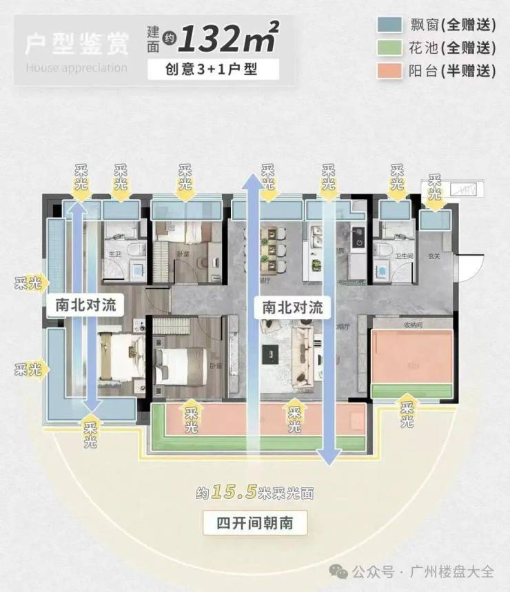 132户型亮点:约8.2*1.9m 跑道式阳台,赏景休闲两相宜,南望江北瞰园,享IMAX无遮挡视野,生活“嵌入”风景,尊荣入户玄关,5.3m奢阔复合厅,格局通透,气度超然,约33㎡总统级套房大主卧,奢配270°瞰景大飘窗。