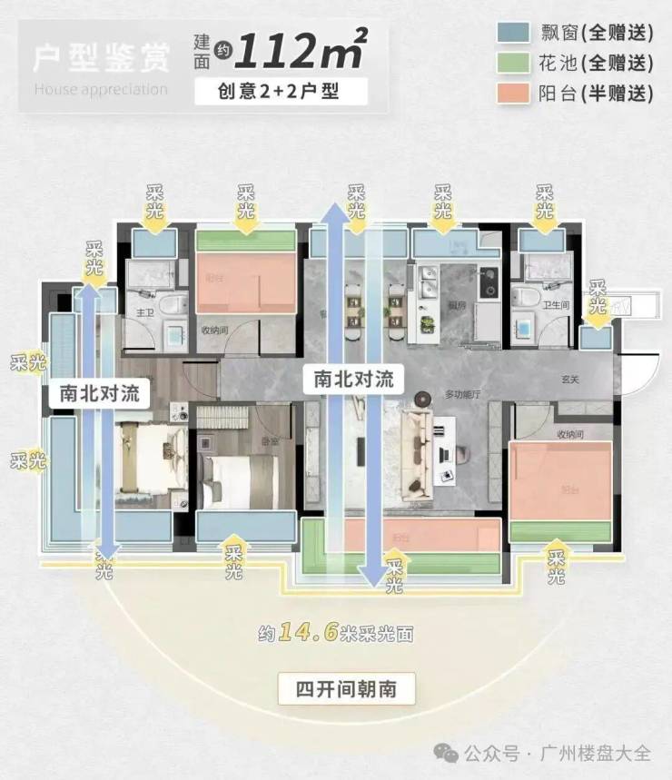 112户型亮点:最高性价比户型,区府舒适大四房,约5.2m 方厅设计,待客会友从容有度,罕见三阳台赠送,拓延更大生活尺度,瞰江视野升级,270°观景飘窗,彰显不凡。