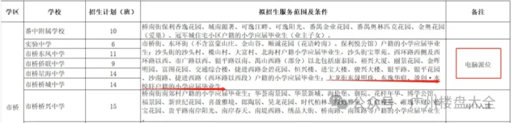 初中则按电脑派位,包括番中附属学校、市桥桥城中学、实验中学、市桥东风中学、市桥侨联中学、市桥星海中学。