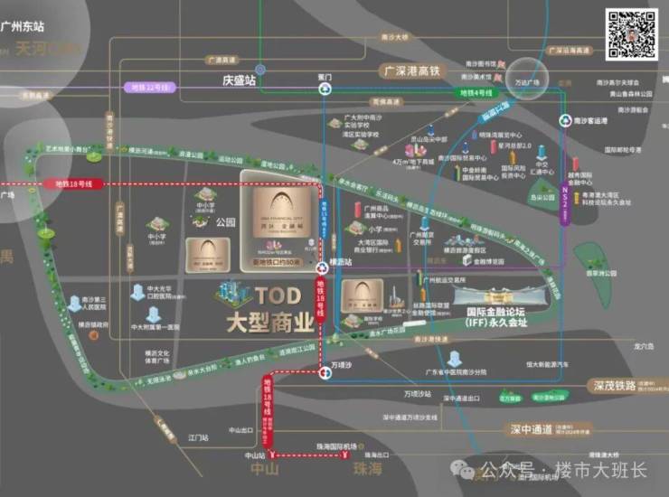 北面通过18号线直达珠江新城与琶洲,南面则快速通往南沙港区与香港。项目地理位置得天独厚,是未来区域升值潜力巨大的理想之选。