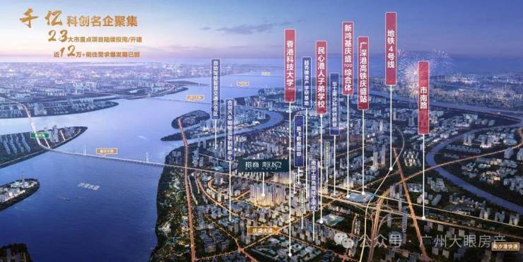 距项目约1公里处新鸿基INC商业体,约243米高南沙新地标,继天汇广场IGC、天环广场后,新鸿基在广州打造的第3个高端商业项目,约32万㎡地标型项目,建成后将无缝连接庆盛站。涵盖大型商场约16万方,比天环广场(约11万方)占地更大,运营成熟后预期日均客流量可达8~10万+,繁华生活近在咫尺。整个项目分两期建设,截止2023年5月31日一期已经顺利封顶,预计2024年下半年起首期陆续开业。
