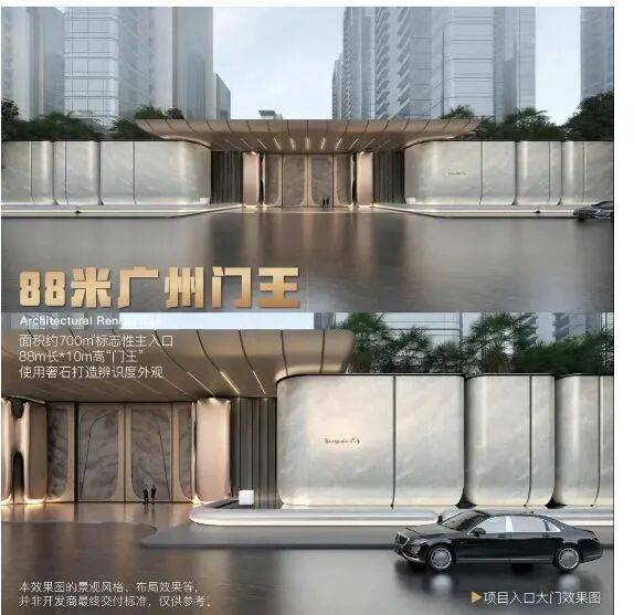 作为保利 “天字系” 产品,项目从设计到交付均按顶豪标准打造:外立面采用玻璃幕墙 + 铝板组合,搭配弧形线条设计,现代感与尊贵感兼具;社区入口打造 88 米长、10 米高的 “广州门王”,大面积奢石铺装,归家仪式感拉满;内部构建 “内院 + 外园” 无界景观,引入西侧城市公园视野,居住品质对标一线城市顶豪项目。