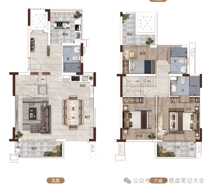 ● 上叠:拥有高拓面积的星空露台,开阔视野是家庭聚会、日常轰趴空间无局限,还可灵活变换成卧房