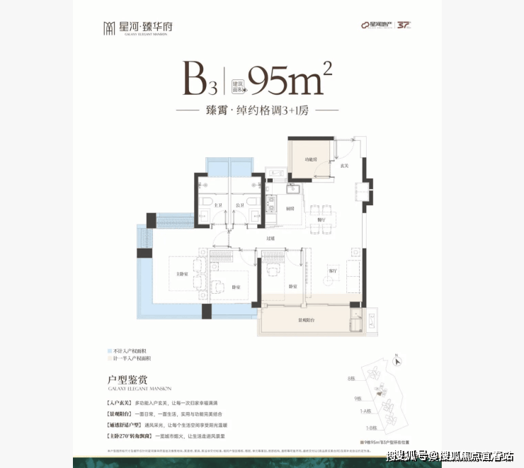 - 95㎡三房:3+1灵动空间,入户飘窗玄关,兼顾收纳与观景;