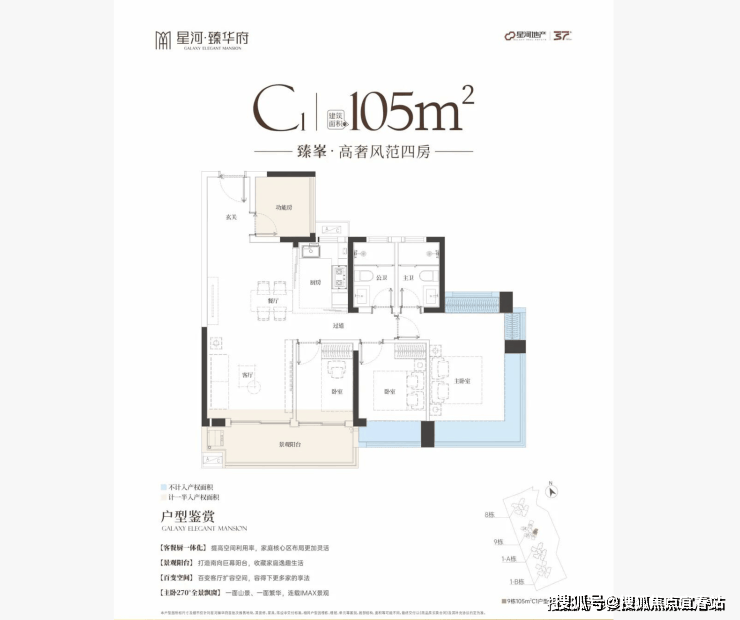 - 105㎡四房:全南向四开间,通透采光,满足多孩家庭居住需求;