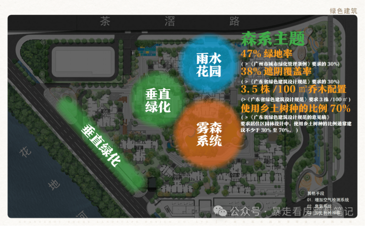四大公园环绕:花地河绿道公园、茶滘榕诚公园、铁路文化公园(在建,一期已开放)和华南植物园科普园(规划)