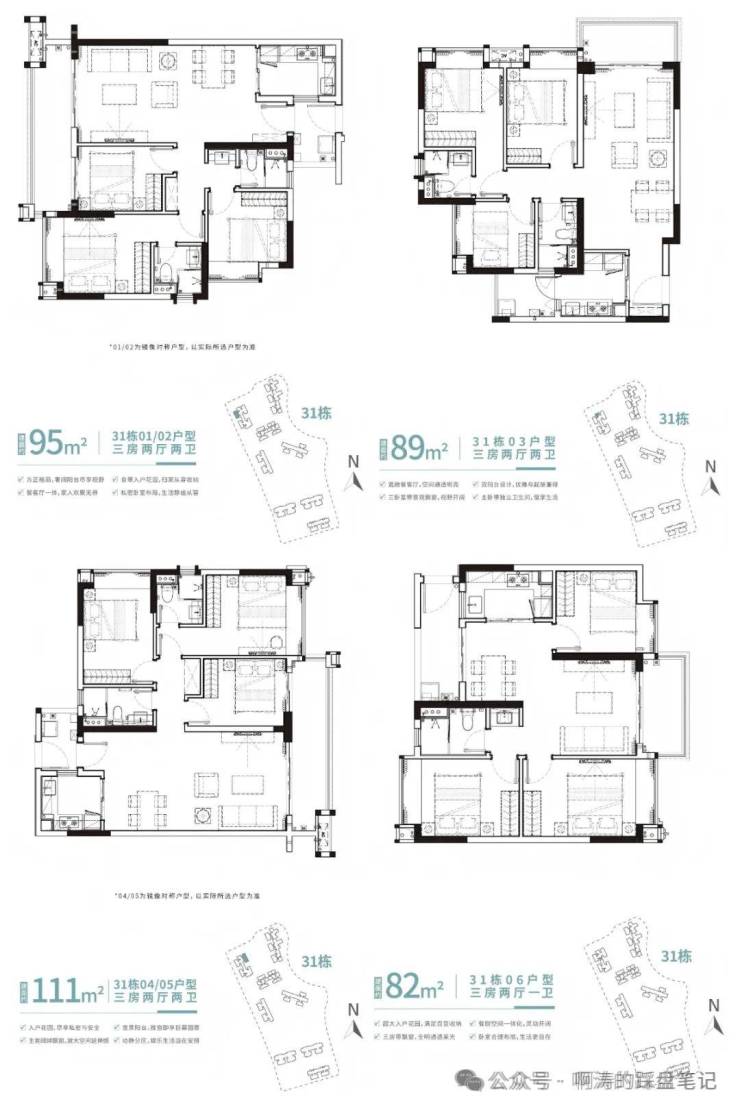 【户型鉴赏·31栋】建面约82-89-95-111㎡三房
