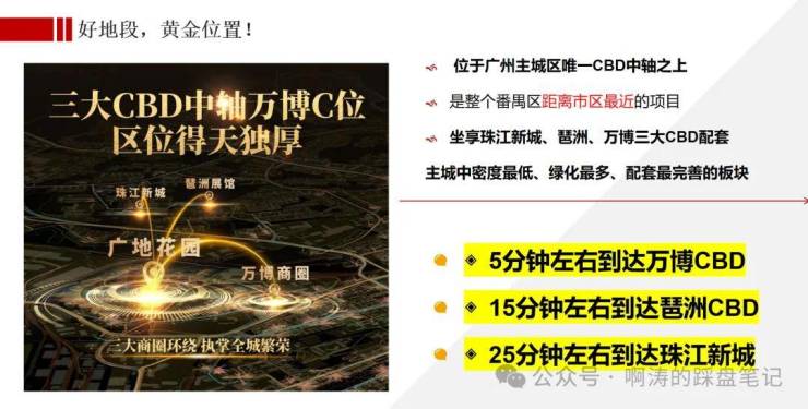 ※华南板块,位于广州主城区三大CBD中轴之上,坐享广州三大国际 CBD 中轴发展红利;2022 年万博长隆 CBD 扩容后将成为番禺经济新中心。