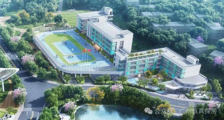 越秀·观樾项目,官宣楼盘配建学校(24班小学)将引进广州天河外国语教育集团办学!从学校效果图即可看出:新学校毗邻月亮湖,依山就势,将山、林、湖的自然意境溶入建筑,将打造一座现代山水书院,还原“自然教育”的真意。
