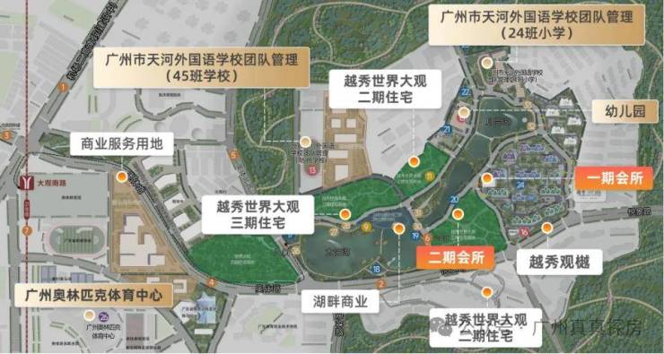 值得注意的是,除了项目自配的教育资源外,世界大观板块周边还聚集了多所优质学校。例如,华阳集团下的奥体东小学、体育东教育集团的灵秀小学、爱莎国际学校、贝塞思国际学校等国际学校,以及执信中学天河校区、清华附中湾区学校等名校。这些学校的存在进一步丰富了该区域的教育资源,为周边居民提供了更多的教育选择。