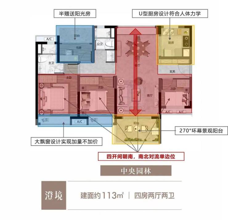 【113㎡四房二厅二卫】双厅南北对流,大飘窗设计,享受极致开阔!