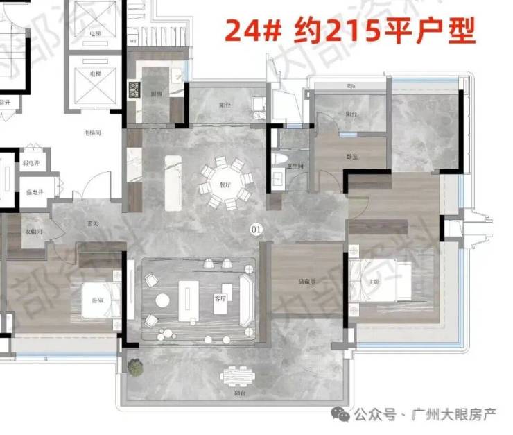230平户型拥有私家电梯厅、双主套、独立佣人房、南北对流、LDKB大方厅、主卧L型270°飘窗等,大大提升了整体的空间体验。