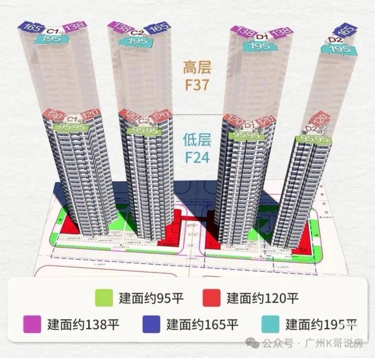项目规划有4栋37层高层住宅楼,住宅楼都分为高区和低区两部分。