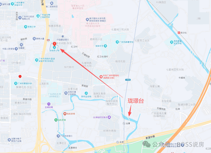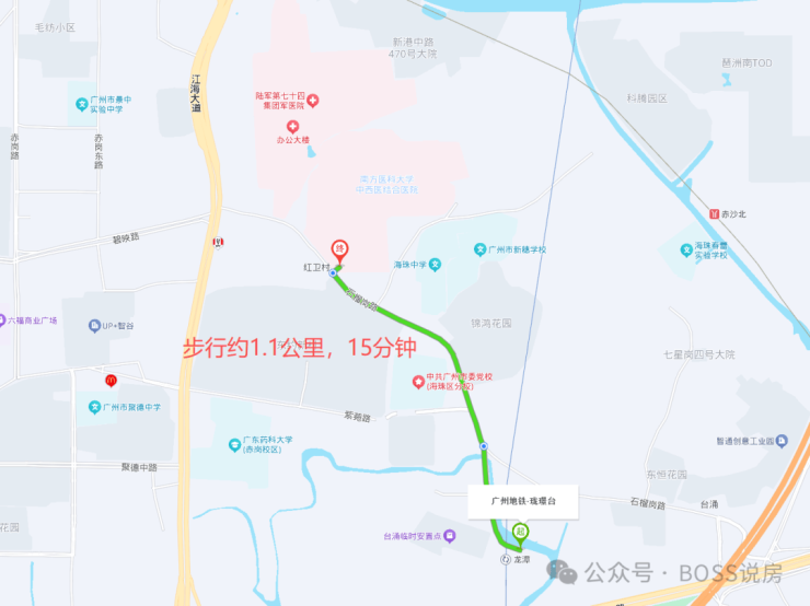 其中,南方医科大学中西医结合医院距离楼盘约 1 公里,广东省第二人民医院 (琶洲院区)、中国人民解放军陆军第七十四集团军医院距离楼盘约 1.6 公里,可为居民的健康提供保障。