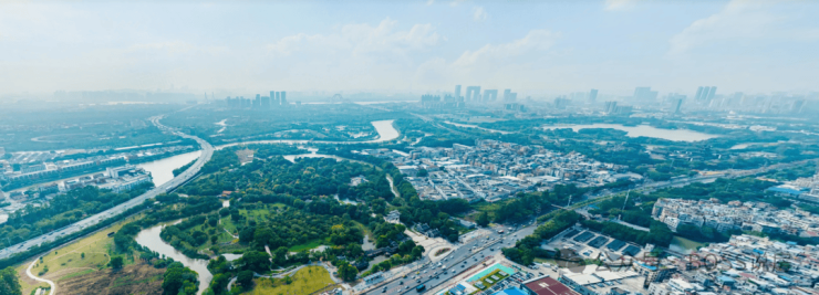 项目南瞰超万亩海珠国家湿地公园,该公园是全国唯一超大城市中轴线上的国家级湿地公园,被誉为 “广州绿肺”,为居民提供了优美的自然景观和清新的空气。