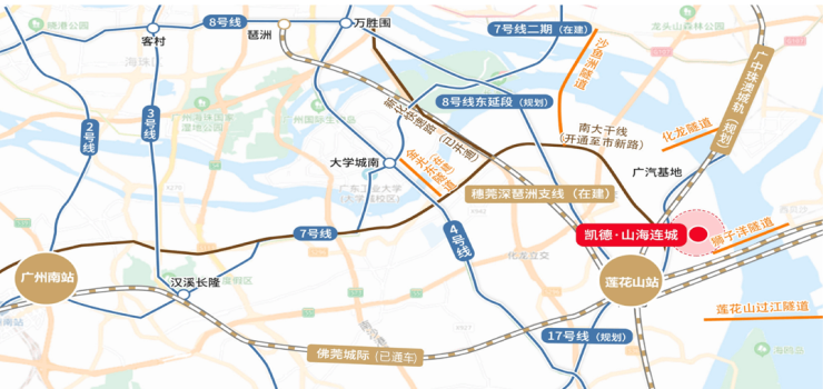 南大干线莲花大道至省妇幼已全部开通,新化快速北段已正式通车——山海连城18分钟通达琶洲保利广场,10分钟即达万博CBD,35分钟即达天河珠江新城/金融城!