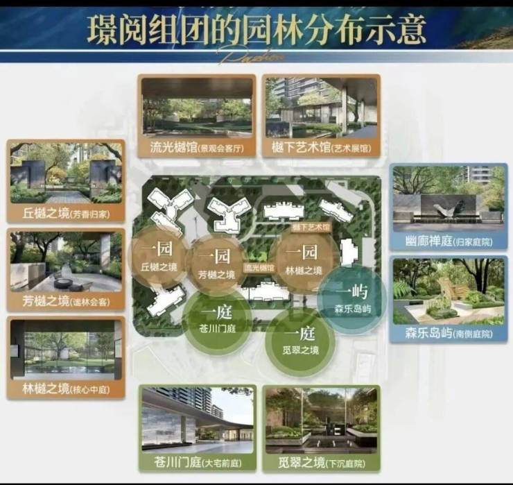 央园林整体实现“一园两庭一屿”多重景观布局。