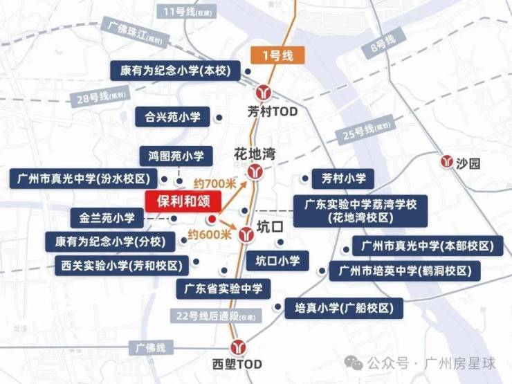 ✅教育资源项目自身配建了一所9班幼儿园,距离花地湾省实学校直线距离500米,周边还有 创办于1872年真光中学、康有为小学、培英中学等名校