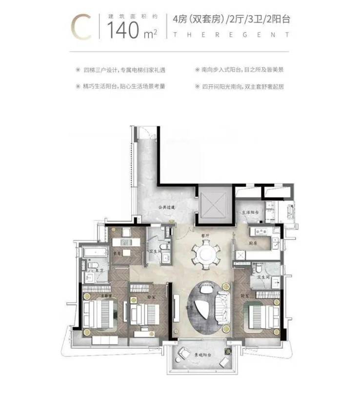 【C户型】约140㎡南向园景大宅