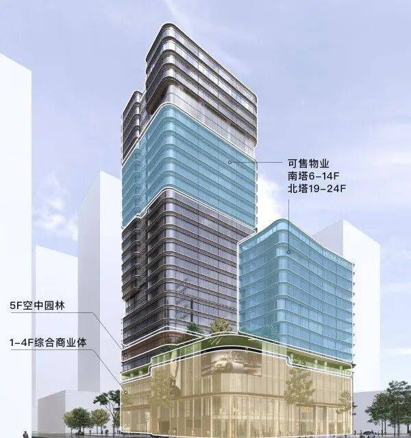 小区配套:位于金融城东区,一线望江。项目占地约7600㎡,总建筑面积约8万㎡,楼高约131.9米,分为南北两座塔楼。