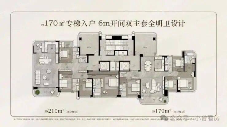 目前项目在售的户型涵盖 120㎡、140㎡、170㎡和 210㎡的四房单位,均为带装修交付。