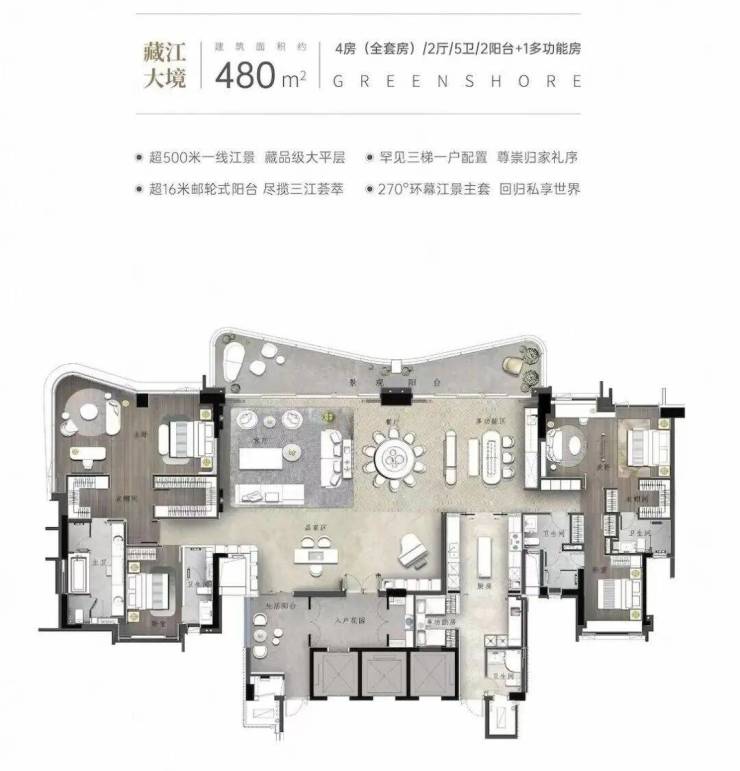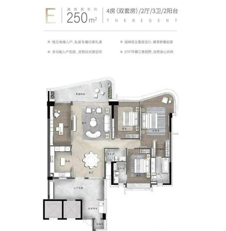 【E户型】约250㎡一线环幕江景大宅