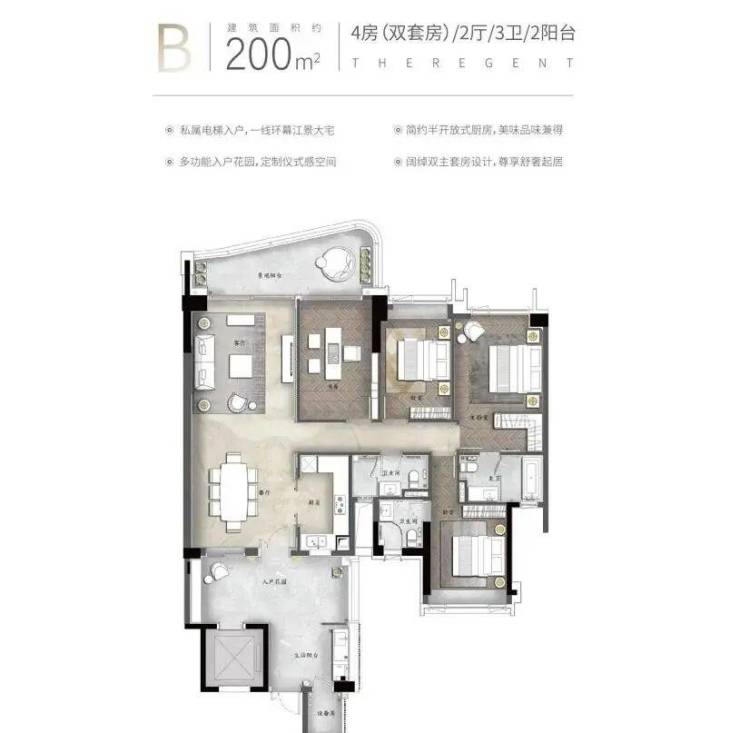 【B户型】约200㎡一线临江环幕大宅