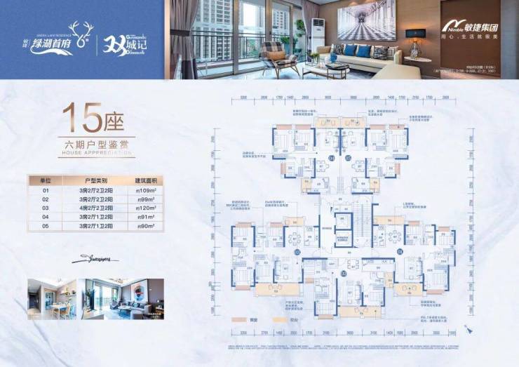在售产品:六期约71-121㎡二至四房品质装修洋房;五期约90-120㎡三四房纯现房(建筑面积)