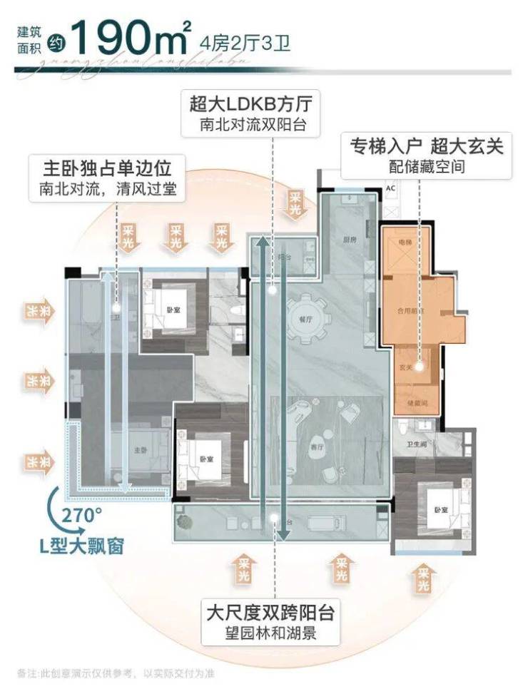 现在越秀·观樾,中轴园景建面约140㎡户型,190㎡户型,将能更好地满足迸发的改善置换需求。