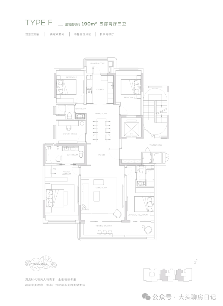 【190㎡户型】观景双阳台-高定双套间-私家电梯厅-双洄游动线