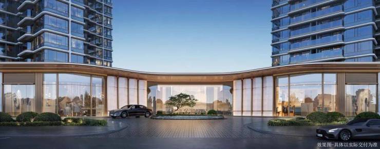 ◎长达约120米弧形主入口界面,城市级封面门庭,集萃名贵奢石臻造,铺陈都会风华,礼遇当代门庭,呈现繁华CBD里的曼妙意境。