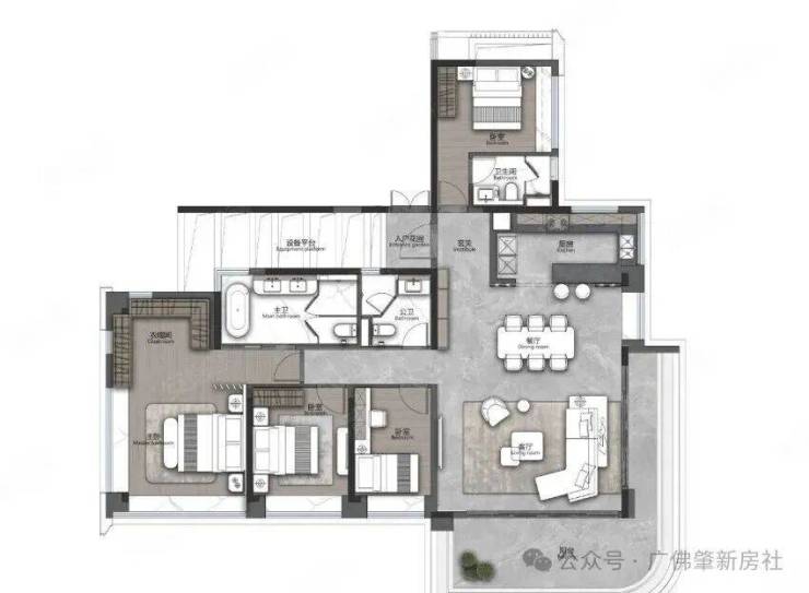 目前在售的户型覆盖刚需到改善需求,得房率超过 100%,每户还配备 5-8㎡的设备平台,相当于额外多出一间房。
