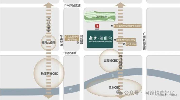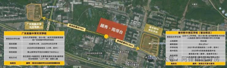越秀·阅璟台由广东实验中学天河学校统筹安排学位,同时可参与清华附中湾区学校摇号