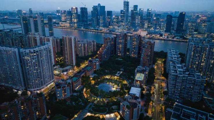 与环境高度契合的风水建筑布局,尤其值得推敲。可真正让我一眼入魂的,绝壁是中央园林。CBD建筑无一向天要高度,可它拿出近半土地造约4.8万㎡广阔园林。与南侧珠江、北侧珠江公园,形成一条南北贯通的生态通廊。步入园中,满屏的不同绿植长势甚好,习习江风吹来,一路伴随虫鸣鸟叫,甚是惬意。