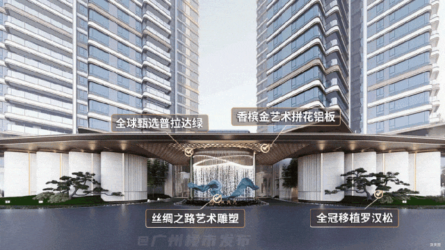 比如约88米的星级酒店式大门,意大利定制普拉达绿大理石、珍稀罗汉松等,从选材到工艺几乎是不计成本地为业主营造归家仪式感和尊贵感!