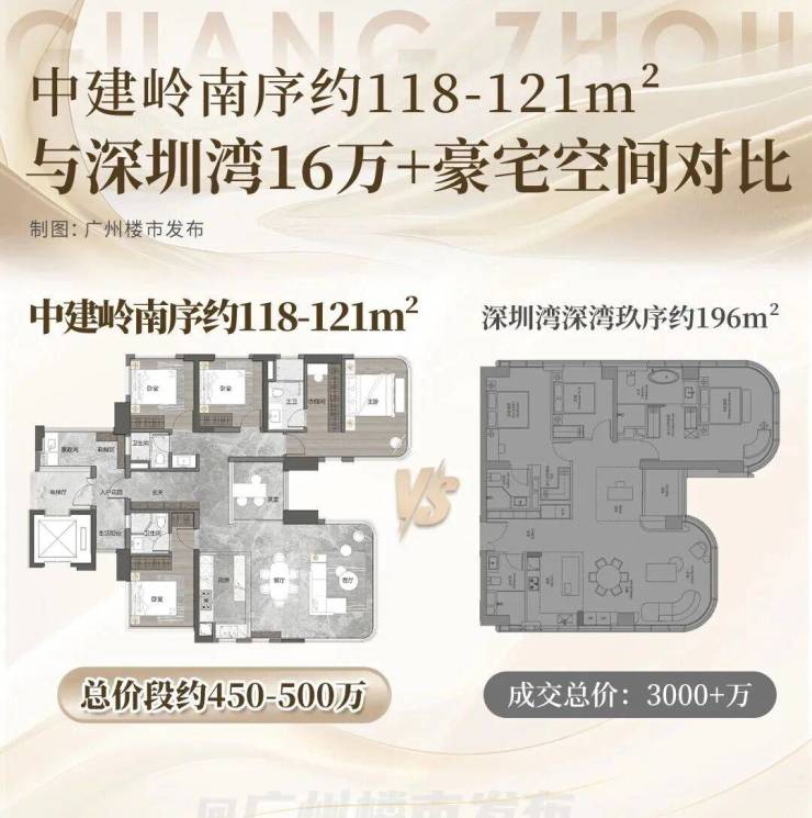 约118-121平户型,最大的卖点是对标深圳湾顶级豪宅深湾玖序的设计,打造了广州首创双全景舱。