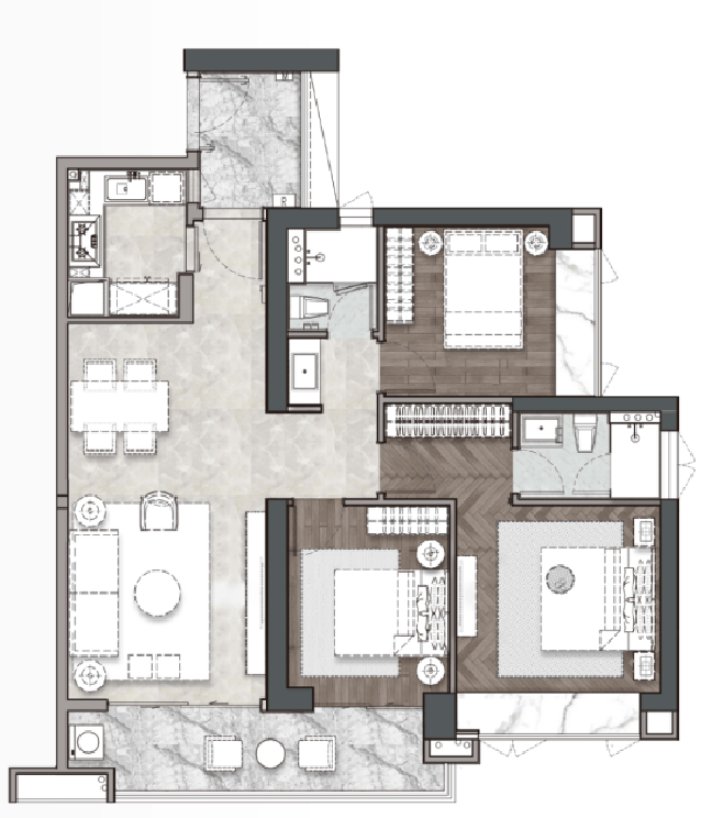 TOP1:【A1&A2--01&02】 建筑面积约120㎡三房两厅两卫