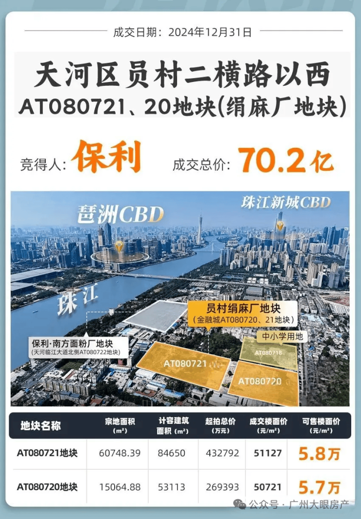 2024年12月31日,天河员村绢麻厂地块被保利拿下,折合成交楼面价5.1万/㎡!