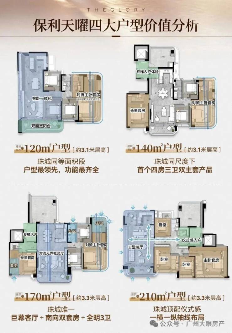 户 型:建面约120-140-170-210㎡云幕平层