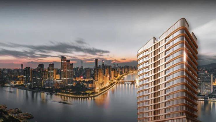 建筑设计赋予“风帆”造型,外立面臻选豪宅专属双层LOW-E玻璃与铝板幕墙。独特的“金丝镜框式”窄边框立柱与巨幕弧面玻璃的结合,与江景无界,独享雍容生活。