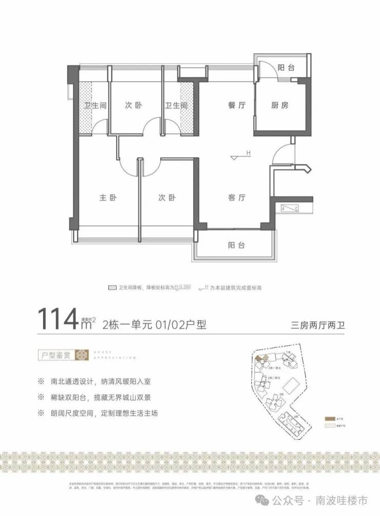 →归心生活:建面约110-133㎡城山双景,南北通透、稀缺双阳台,全系品牌精装,非凡品质臻享